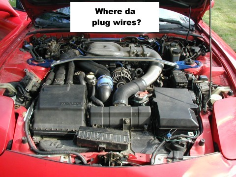 Well I got brave after getting laid off last week and decided to change the spark plug and wires on my 1993 Mazda RX-7. I'm actually starting to get pretty good at wrenching my rex... Especially since before this last year that I've spent with 2 rexes, I've not really done too much wrenching and when I have it's on my 1994 Ford Mustang GT which has a 302 and lots of room under the hood which makes most tune-up stuff pretty easy. OK let's get on with the story. Total time it took for me to get everything apart and put back together was approximately 3 hours. Probably would have taken me a third the time if I'd done it before. And it probably would have taken me two to three times longer if not for the great information that I found on Rob Robinette's and Steve Cirian's sites. The only funky tool I needed was a 3/8" flexy head ratchet, and that was for getting the plugs on and off. There's very little room once you get down to where the plugs actually are and the flexy head will allow you to turn the ratchet more so that you won't have to guess when you've turned the plugs 1/2 turn... |
