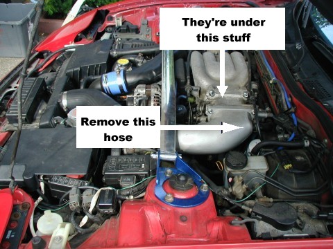 You need one of those small 2-jointed snap-on rachets to do it, but... i just jack up the front end and do it from underneath the car. if you try to do it from the top, you have to remove way too much stuff. doing it from down below, suing the double-jointed small ractchet, its pretty easy and takes less than half an hour. the only problem is that you do the front leading plug pretty much by feel, since you have to contort yourself a bit to get at it.