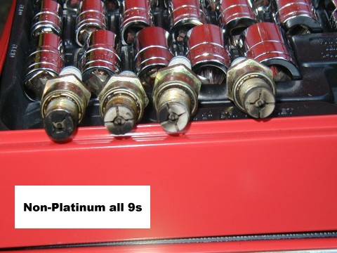 | I deinstalled and reinstalled the plugs one by one. This was to keep my dyslexic self from really screwing up. I decided on using NGK Platinums (instead of the non) and 7 leading / 9 trailing plugs. Remember to use a little bit of anti-seize when installing the plugs (on the threads). I once forgot on a motorcycle that I owned and it was a real bitch removing the plugs. | ![]() |