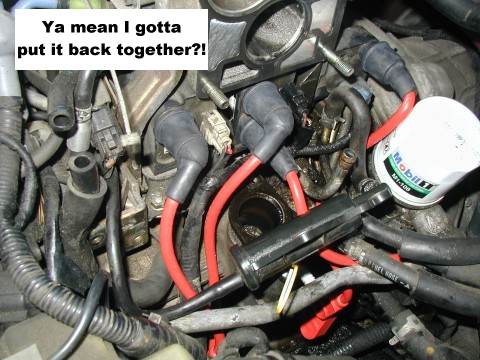 the oil filler tube. After much grunting and straining (ouch... the back of