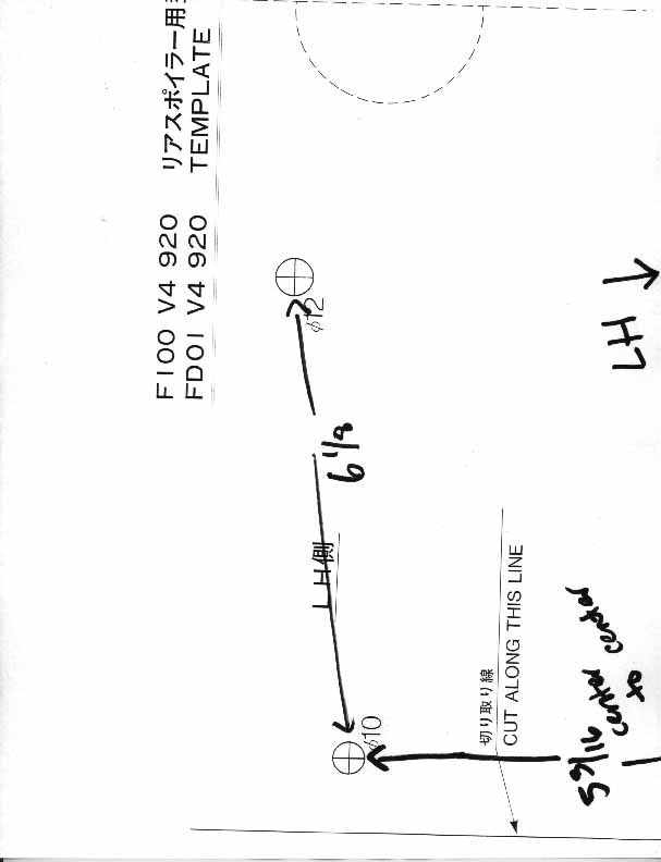 Then measure between the bolt holes on the spoiler, and divide by two. That will give you the distance from the center line to the bolt hole, and mark.